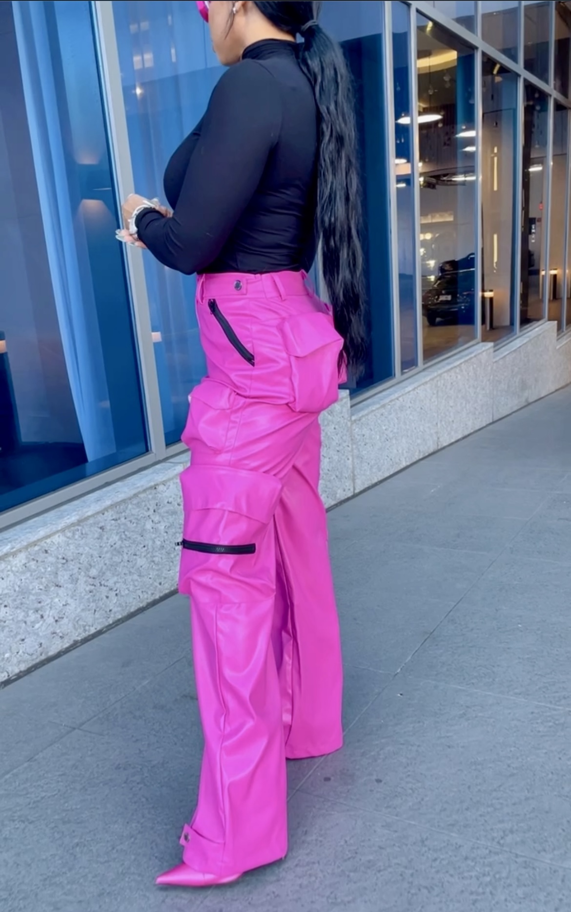 These Barbie Pink Cargo pants are complete show stopper!! With multiple pockets detailing, wide leg design, they are a must have in your closet.- Cargo pants
