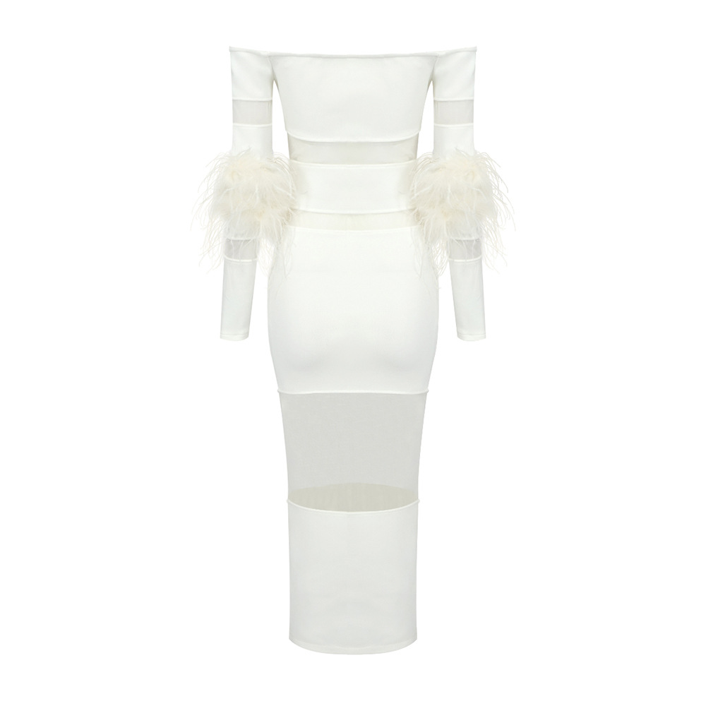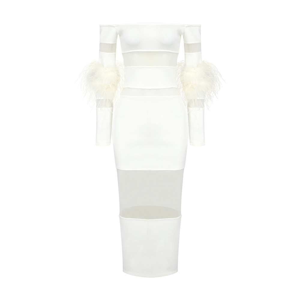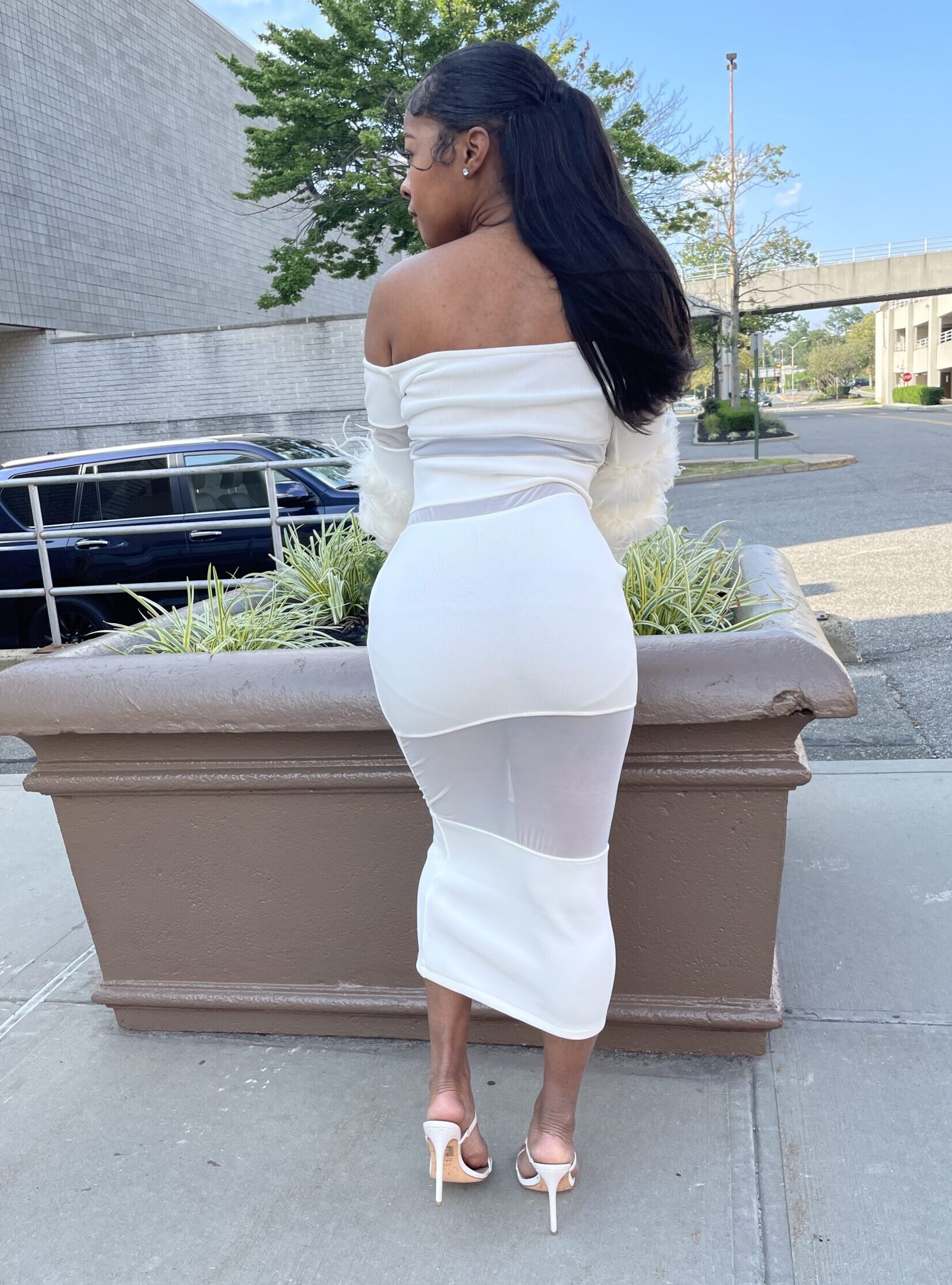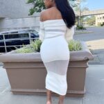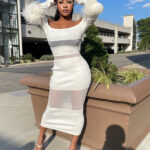 Bring all the drama to your next event with this gorgeous midi dress. Made from a stretch material with sheer inserts for a chic look.